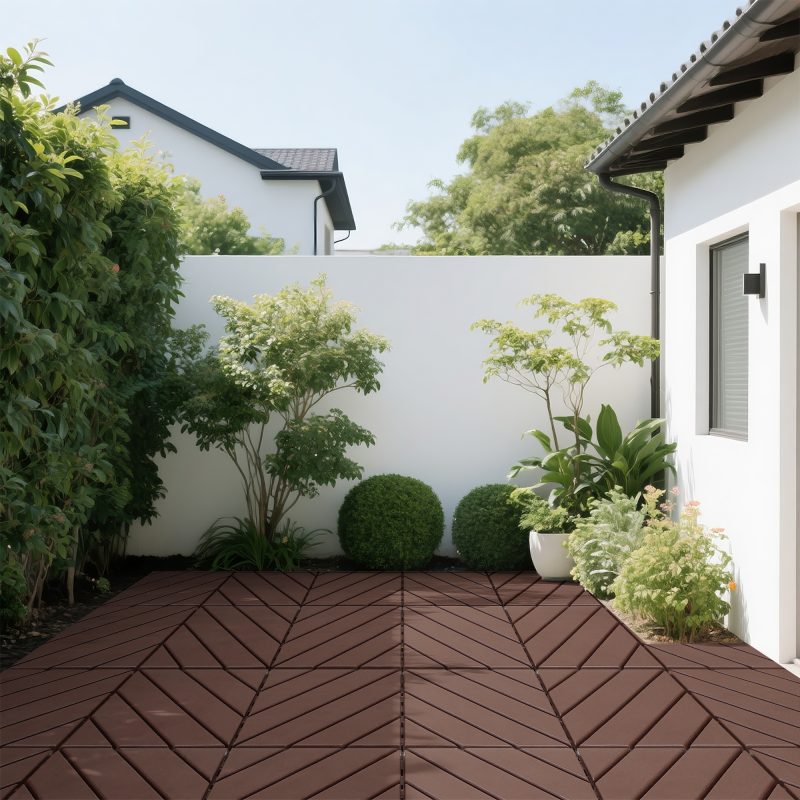 Six-square puzzle wood grain-44 Pack Interlocking Deck Tile, Patio Deck Tiles,12x12in Square Waterproof Flooring Tiles All Weather Use, for Outdoor, Indoor, Poolside, Balcony, Backyard