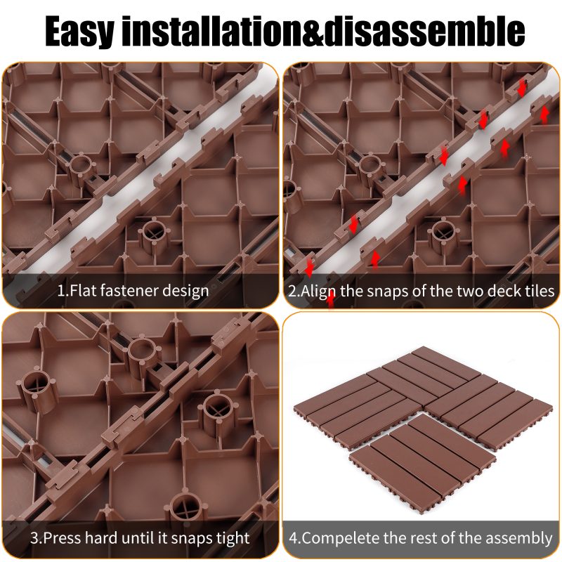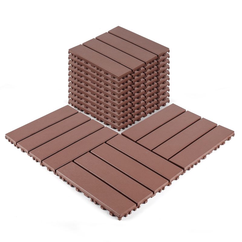 Long four stripes of wood grain-Brownish red-44PCS Interlocking Patio Deck Tiles – 12″ x 12″ Waterproof Indoor Outdoor Flooring, Patio Floor Decking for Balcony, Backyard, Garden & Poolside, All Weather Use