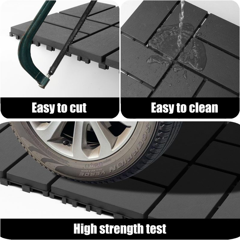 Minor eights wood grain-Interlocking Deck Tiles, 44 Pack , 12″x12″ Waterproof Outdoor Flooring All Weather Use, Patio Floor Decking Tiles for Porch Poolside Balcony Backyard